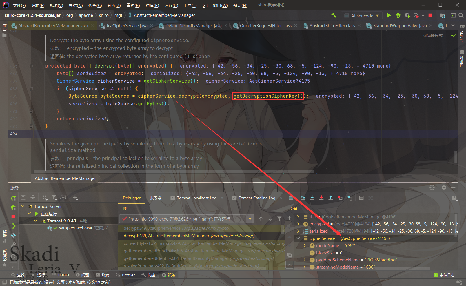 然后调用org.apache.shiro.crypto.JcaCipherService#decrypt进行AES解密