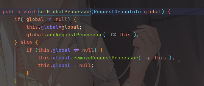 跟进AbstractProcessor类发现有Request以及Response,而且这两个都是final类型,也就是说其在赋值之后,对于对象的引用是不会改变的,那么我们只要能够获取到这个Http11Processor就肯定可以拿到Request和Response 因为不是静态变量因此要向上溯源,继续翻阅调用栈,在AbstractProtcol内部类ConnectionHandler的register方法在处理的时候就将当前的Processor的信息存储在了global中