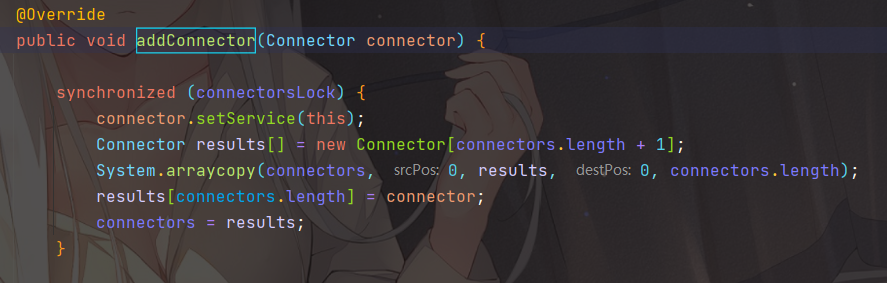 而在Tomcat启动过程中会创建connector对象 并通过addConnector函数存放在connectors中 这里的Service为StandardService