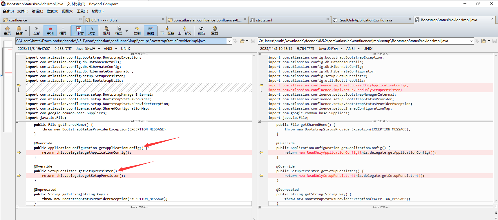 diff一下 com.atlassian.confluence_confluence-8.5.1.jar 和 com.atlassian.confluence_confluence-8.5.2.jar 文件