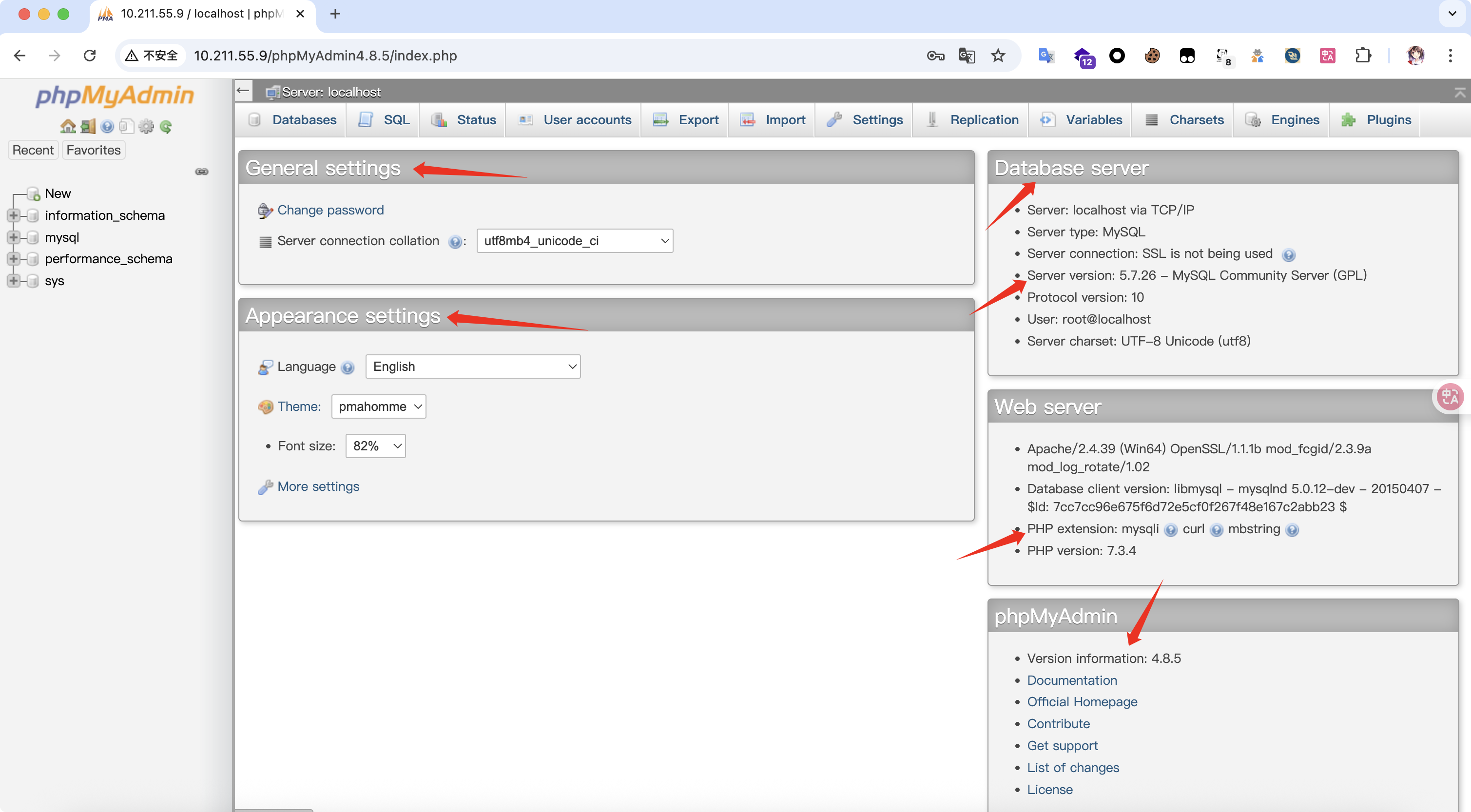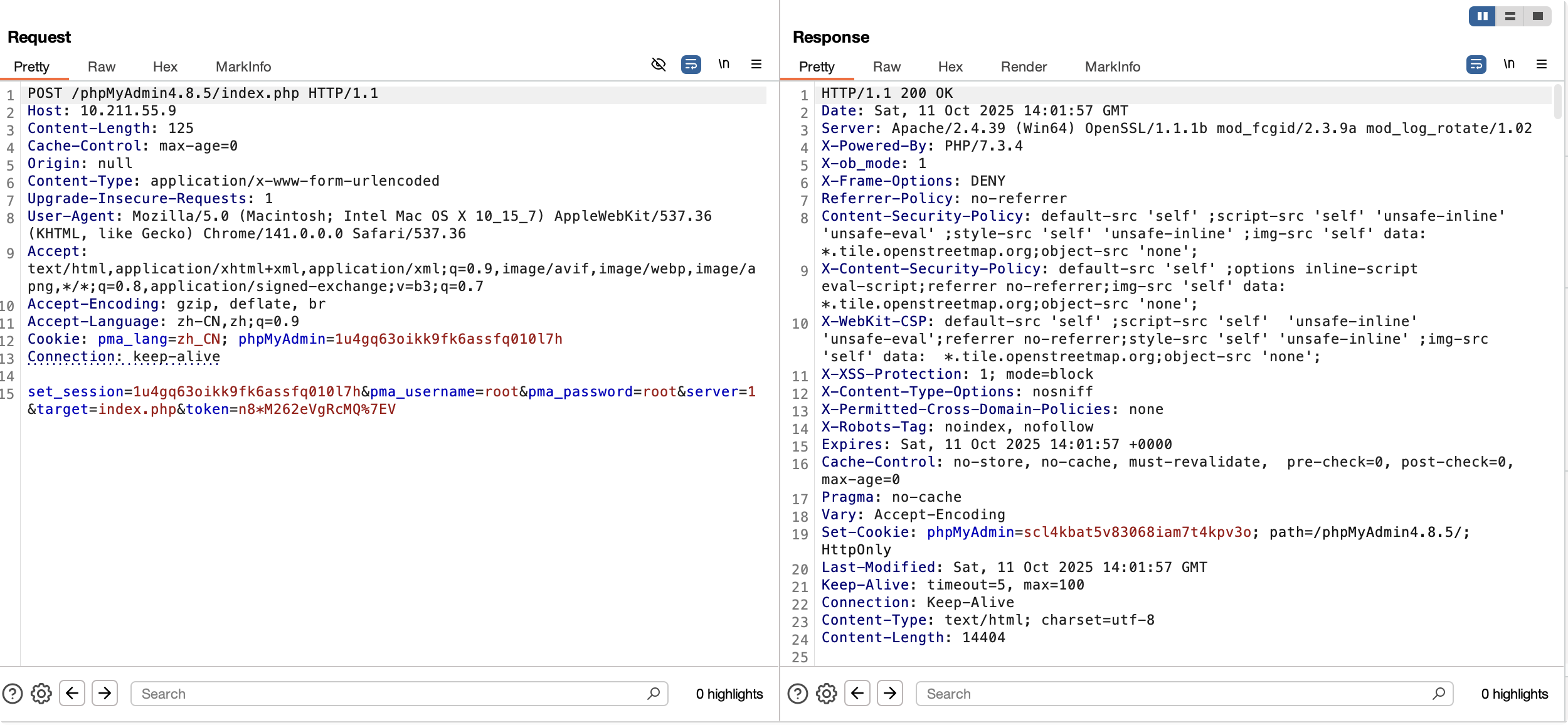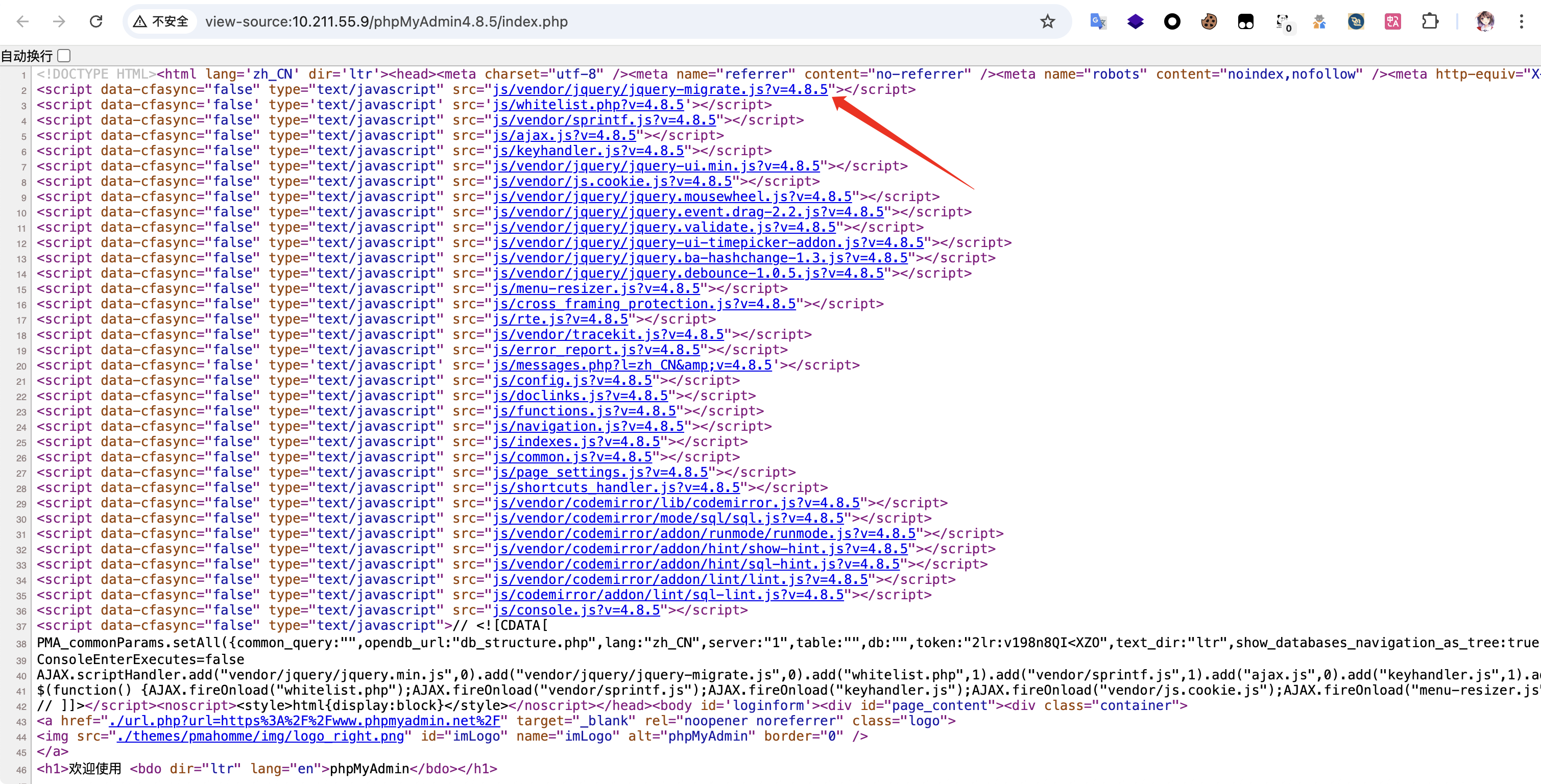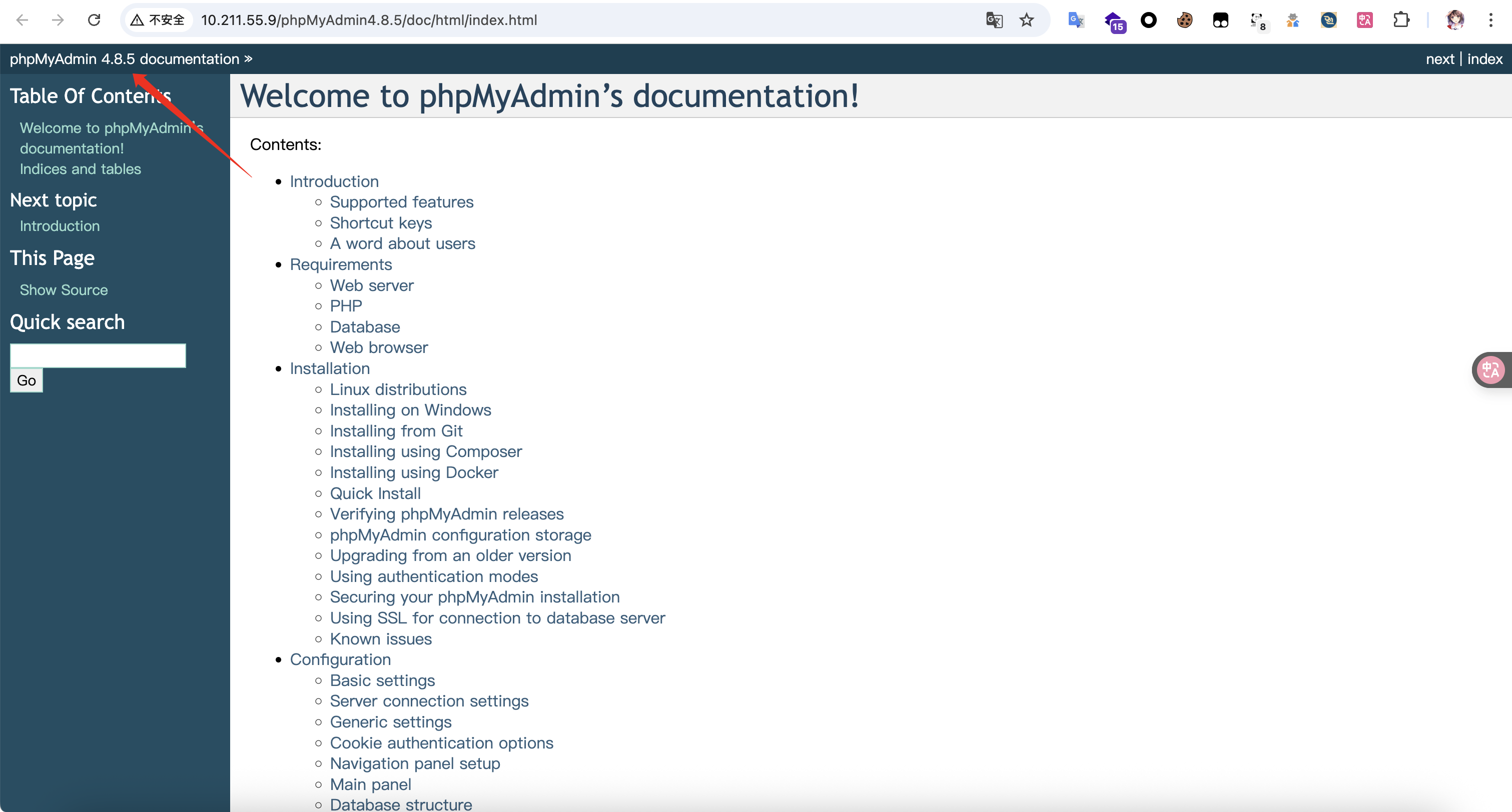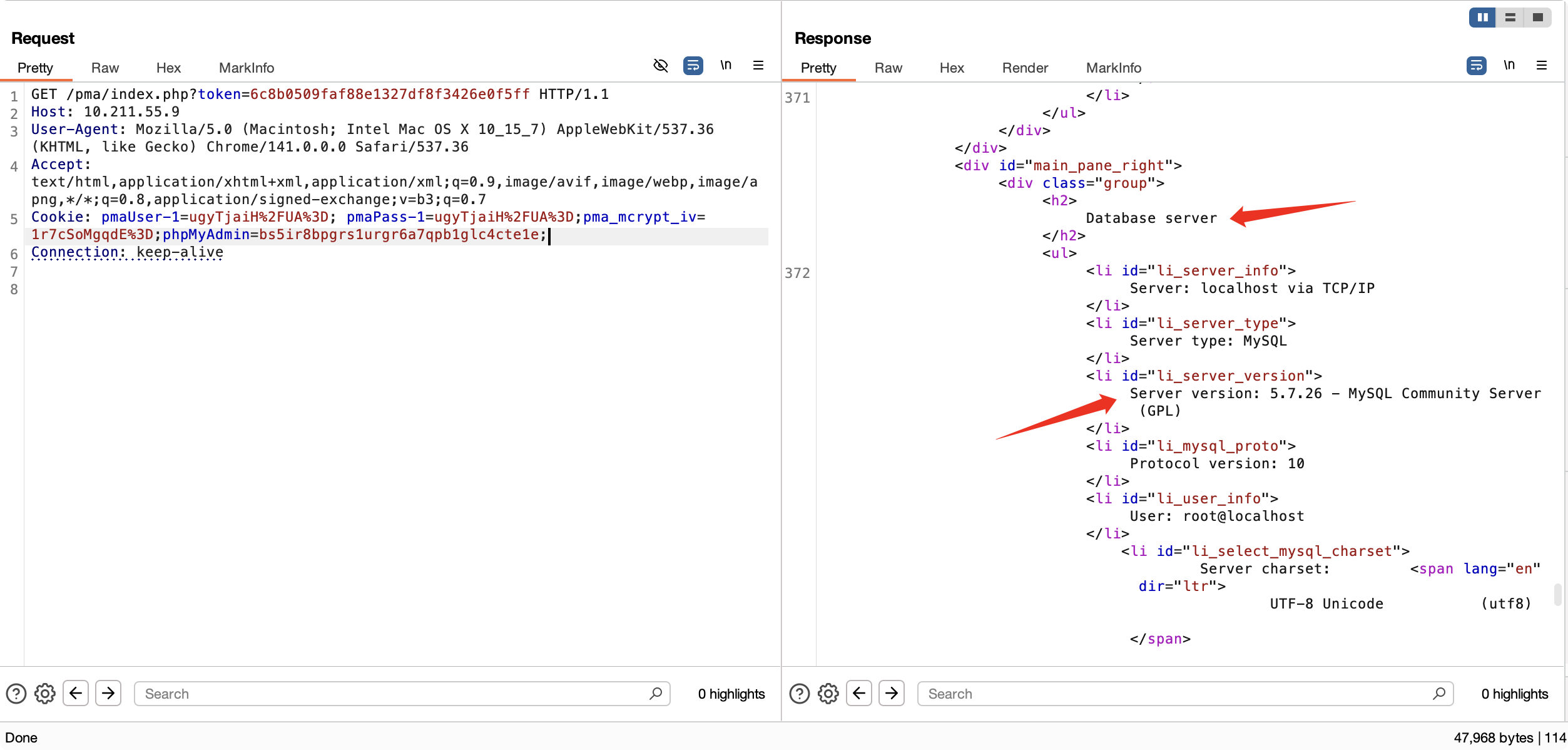 我们需要先判断是否为未授权,然后再去执行爆破,我们看一下phpmyadmin后台的界面